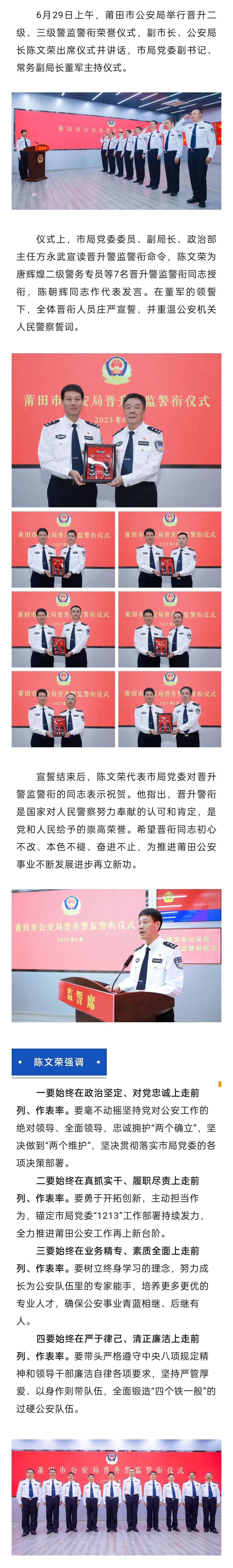 莆田市公安局举行晋升警监警衔荣誉仪式