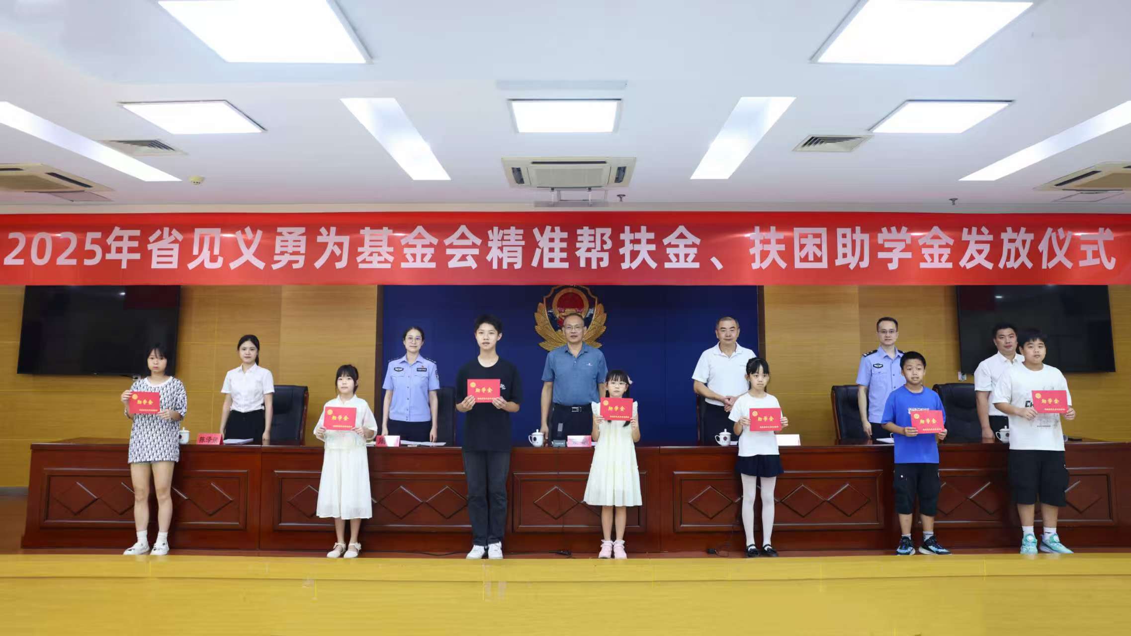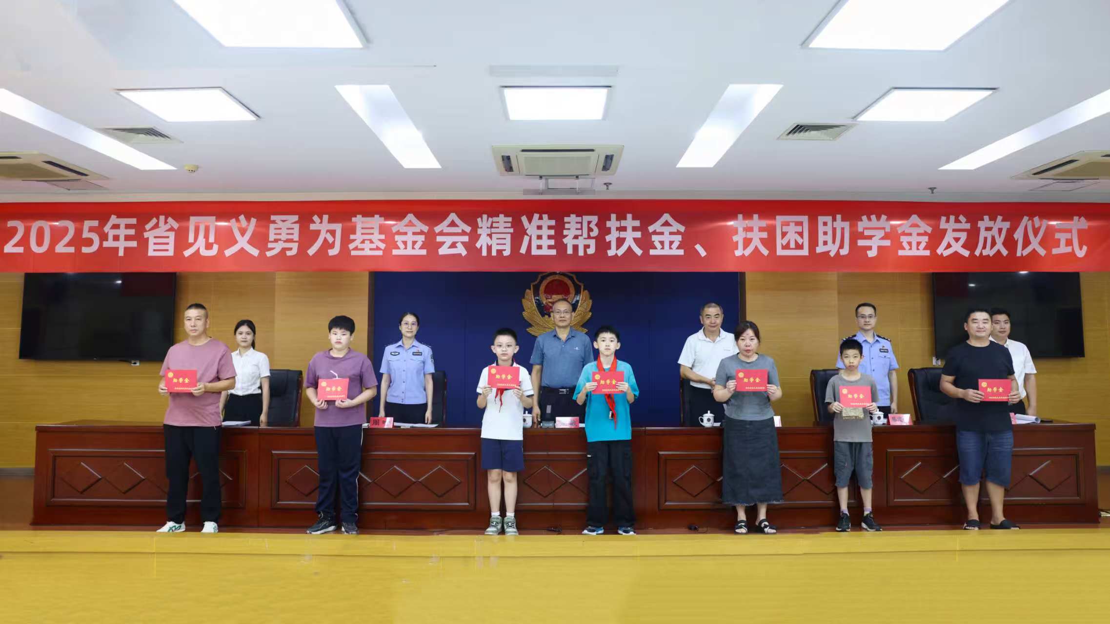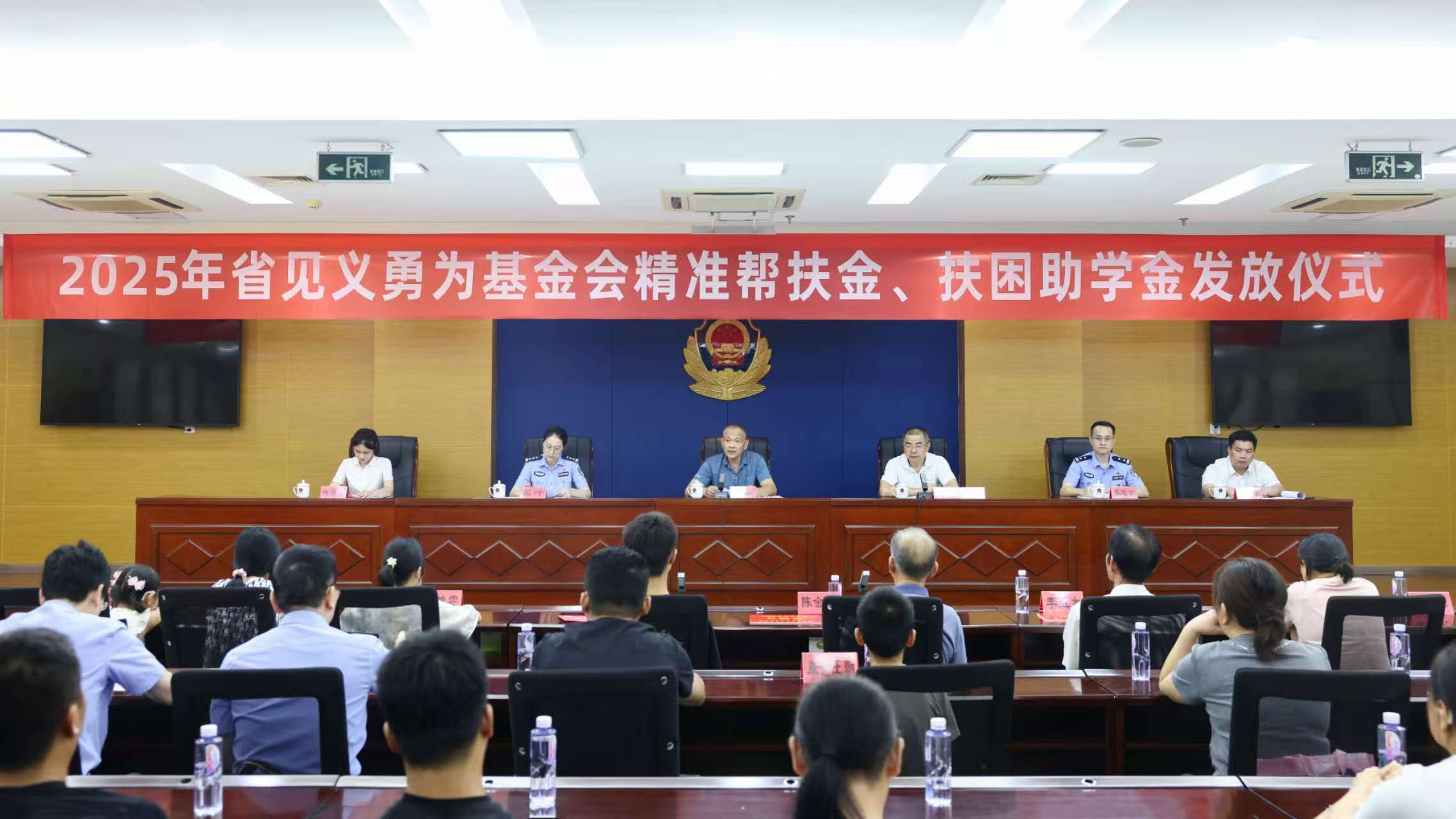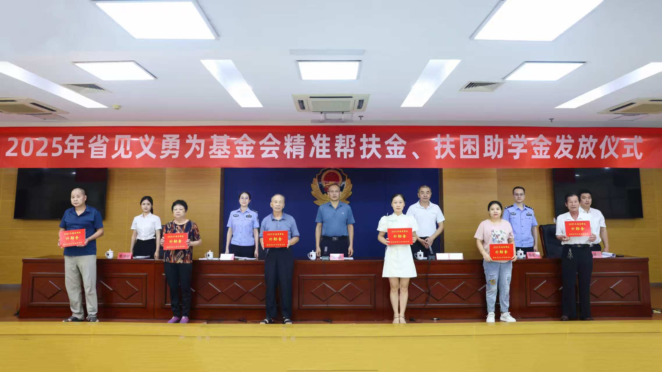 9月23日上午,2025年省见义勇为基金会精准帮扶金、扶困助学金发放仪式在市局举行。省见义勇为基金会监事长苏敏,市见义勇为基金协会副会长何闽松,市局政治部副主任周叶以及市局有关部门、各县(区)公安局(分局)分管局领导参加仪式。