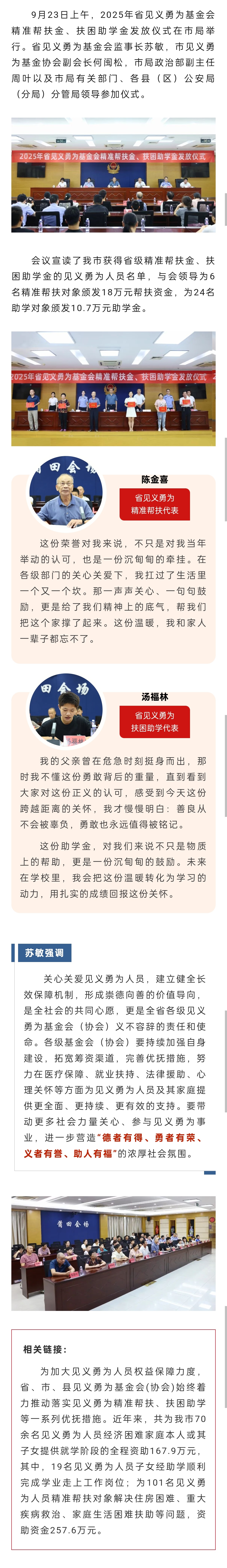我们从未忘记!这笔资金精准帮扶、助学30户见义勇为家庭