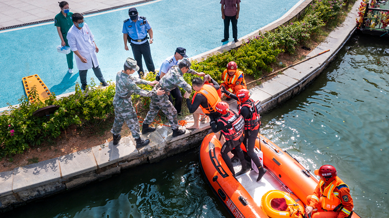 为纵深推进夏季治安打击整治行动,切实提高应急救援实战能力,7月21日,涵江分局联合多部门在白塘湖玉兔广场开展涉险公共区域防溺水应急综合演练活动。