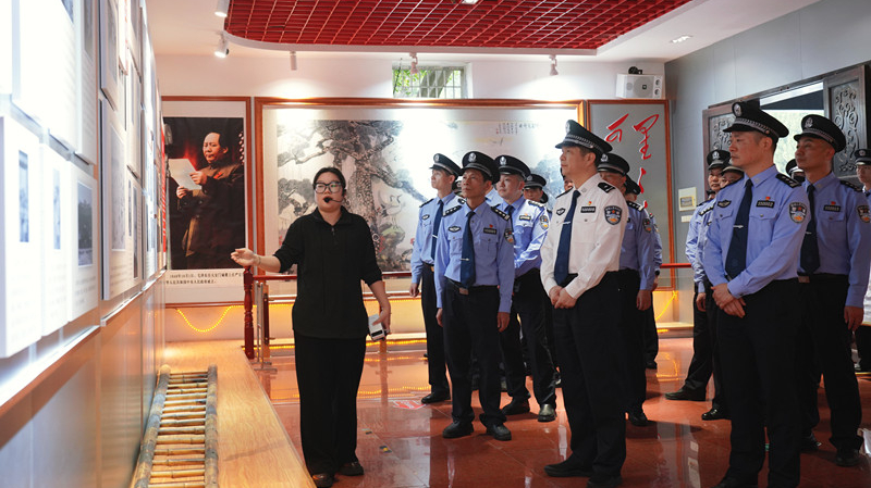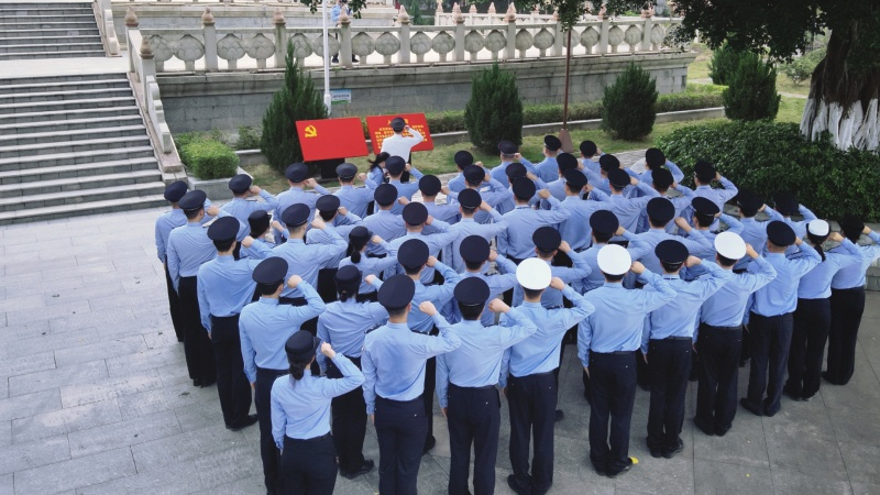 在庄严肃穆的革命烈士纪念碑前,全体党员民警整齐列队,面向烈士纪念碑肃立,奏唱《中华人民共和国国歌》。接着,全体党员民警脱帽,向长眠于此的革命烈士鞠躬默哀。随后,在《献花曲》中,民警代表抬着花篮走向纪念碑,向烈士敬献花篮,市局党委委员、副县长、公安局党委书记、局长蔡国民迈步上前驻足凝视,并仔细整理花篮缎带。全体党员民警绕行瞻仰烈士纪念碑并献花。