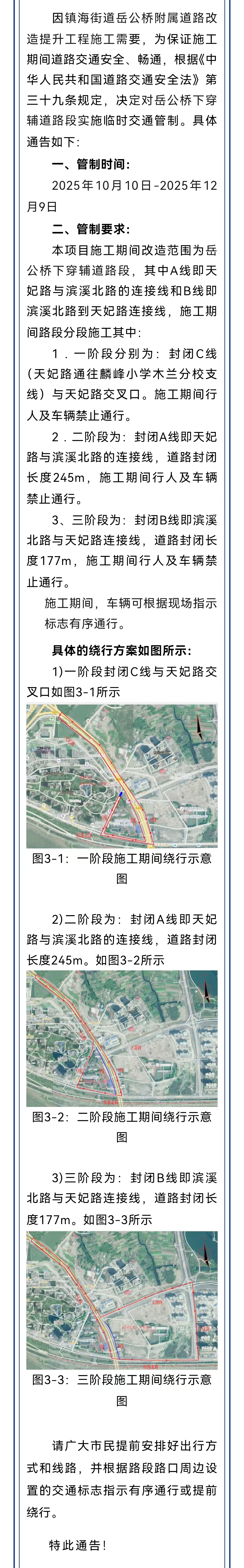 关于莆田市荔城区镇海街道岳公桥附属道路占道施工交通管制的通告